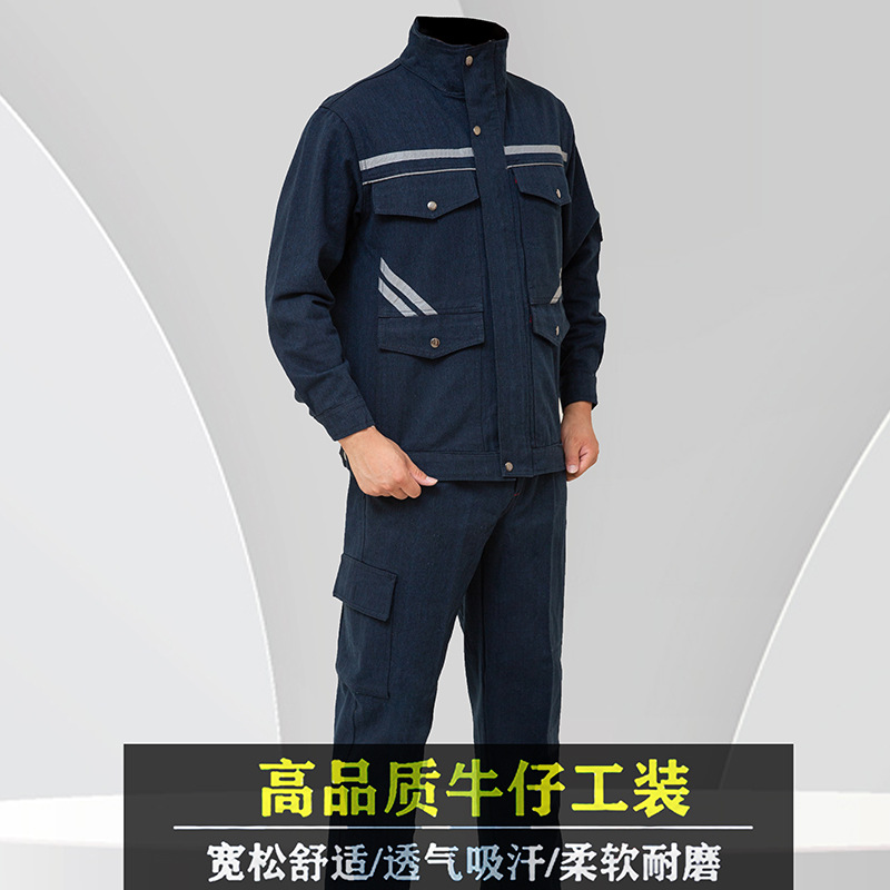 Pakaian kerja Denim tebal setelan pria musim semi dan musim gugur pakaian pelindung tenaga Las strip reflektif pakaian pabrik penjualan grosir