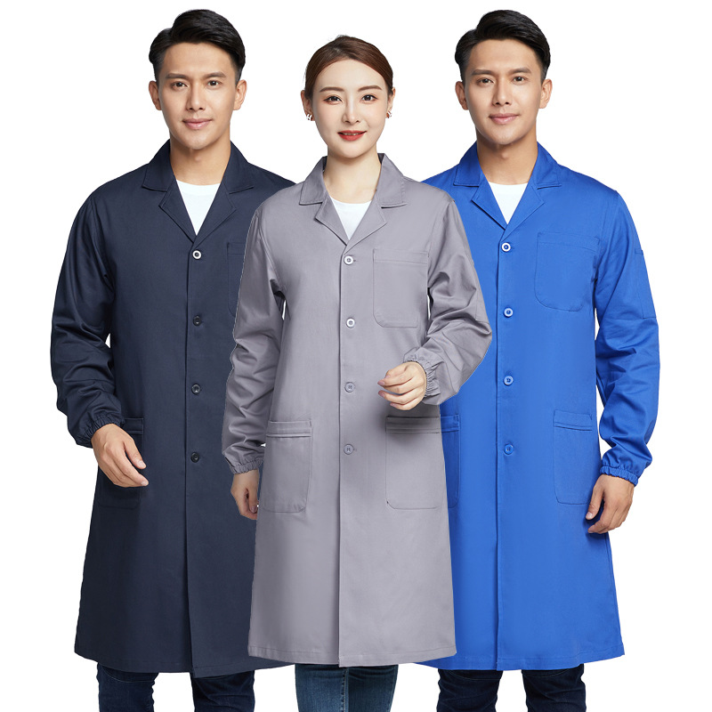 Baju kerja mantel panjang tahan aus tahan debu penanganan gudang mantel biru perbaikan otomatis perlindungan tenaga kerja pabrik makanan bergerak tabung gudang pakaian