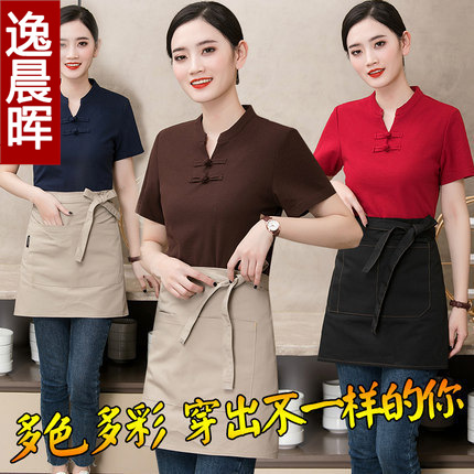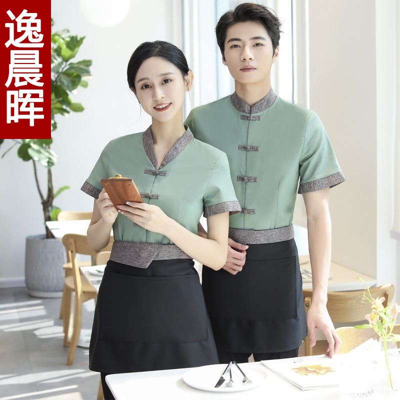 Pakaian kerja Hotel wanita pakaian musim panas pot panas restoran katering Cina rumah teh pertanian pelayan seragam lengan pendek