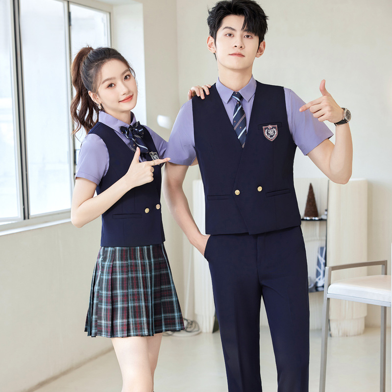 Bar KTV Pakaian Kerja Pelayan Setelan Rompi Meja Depan Katering Lengan Pendek Pria Wanita Pakaian Kerja Guru TK
