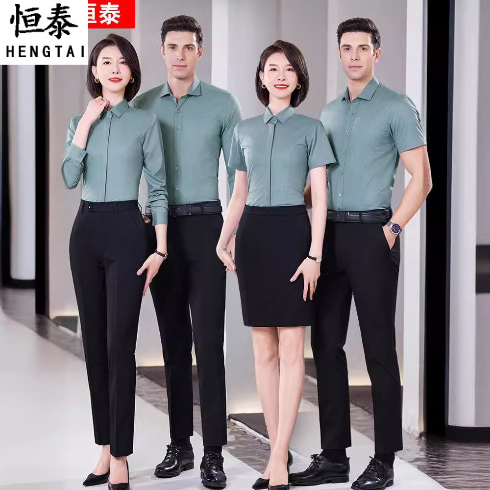 Kemeja profesional pria dan wanita hijau baru kaus bordir logo musim panas bar depan meja ktv pelayan pakaian kerja grosir