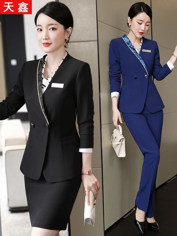 Setelan baju pelayan kerja, setelan profesional ramping pas badan untuk Hotel KTV depan meja kasir musim semi