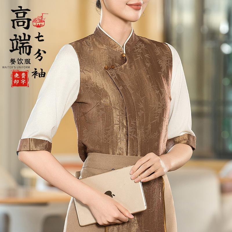 Pakaian Kerja Pelayan Rok Panjang Lengan Pendek Wanita Restoran Teh Gaya Tiongkok Baru Hotel Makan Ruang Makan Hotel Hot Pot Hotel Musim Panas