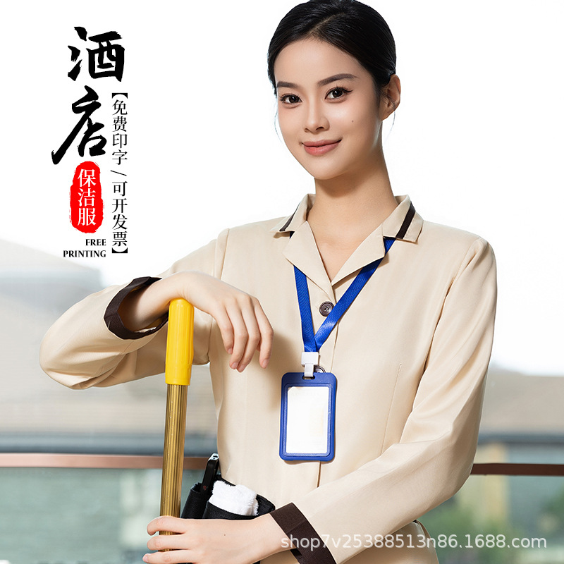 Baju kerja pembersih Hotel wanita, pakaian seragam kerja pelayan Hotel lengan panjang, properti komunitas pembersih musim gugur musim dingin