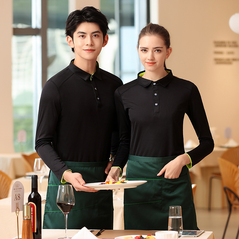 Baju kerja lengan panjang pelayan katering hotel, pakaian kerja klub restoran rumah teh China, pakaian meja depan pria dan wanita musim gugur dan musim dingin