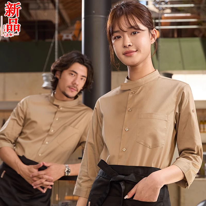 Toko teh susu pelayan restoran Hotel baju kerja toko kopi baju kerja pria dan wanita baju kerja lengan panjang