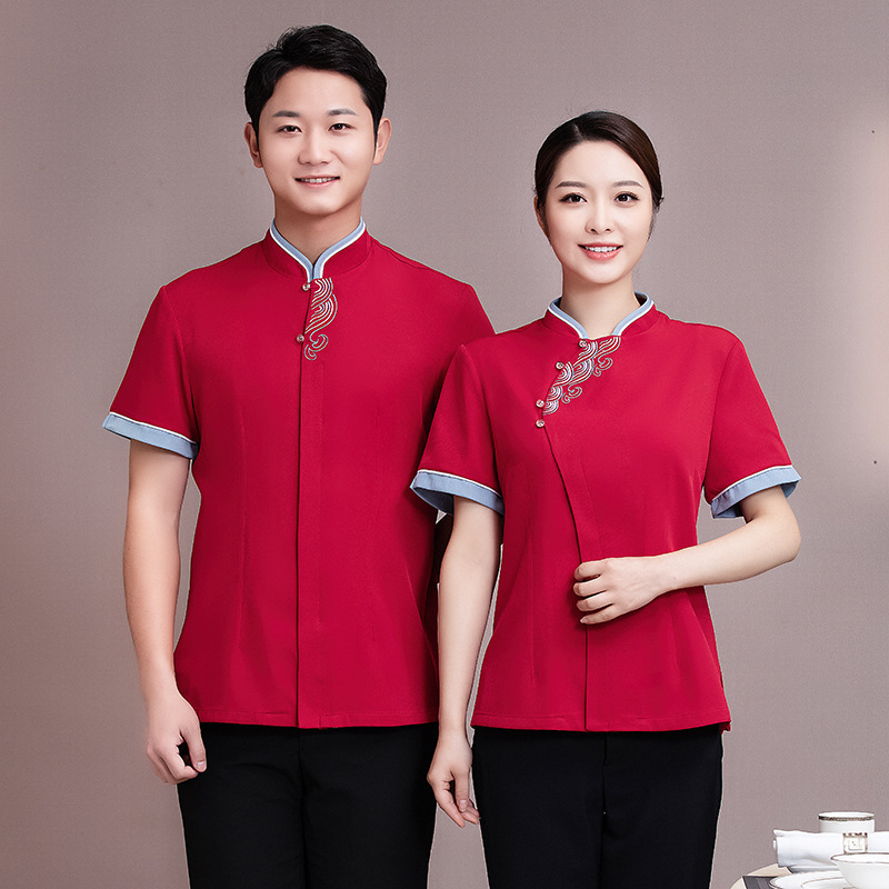 Pakaian Kerja Pelayan Katering Rumah Teh Hotel Pakaian Pria dan Wanita Resepsi Resepsionis Gaya Etnik Gaya Cina Lengan Pendek Musim Panas Wanita