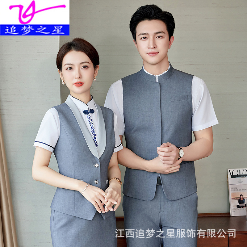 Pakaian kerja resepsi kantor depan, setelan rompi profesional pria dan wanita KTV bar biliar hotel restoran Barat pelayan pakaian kerja