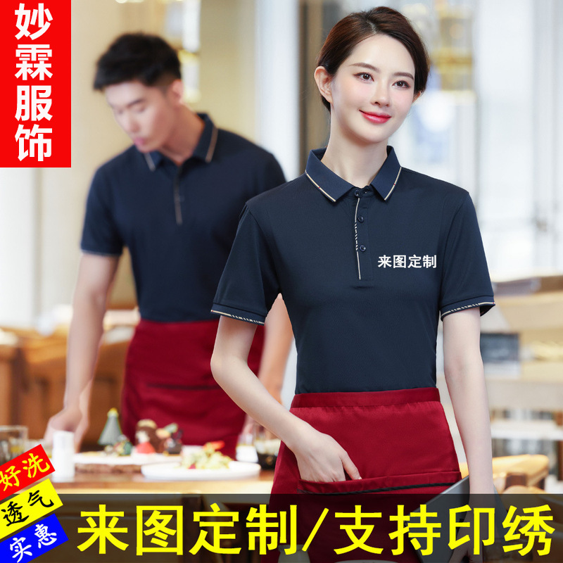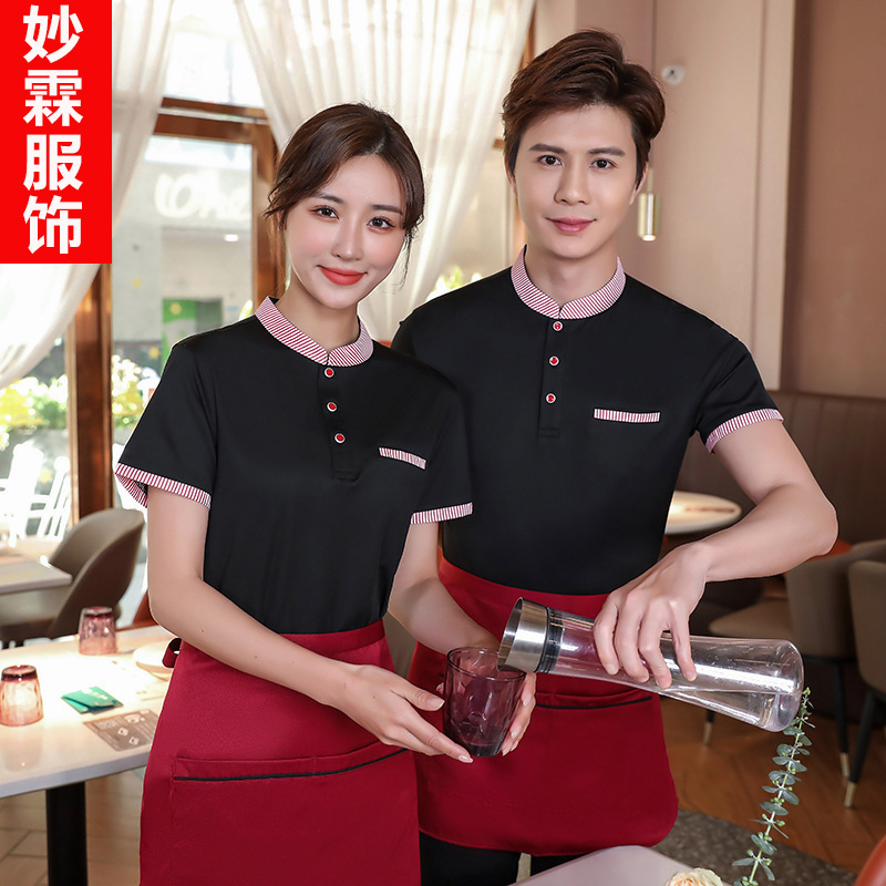 Baju kerja pelayan katering, T-shirt lengan pendek toko teh susu pot panas restoran restoran pakaian kerja restoran baju musim panas
