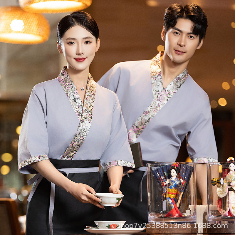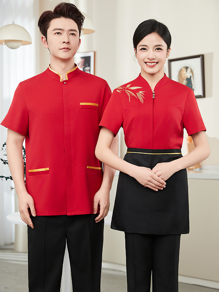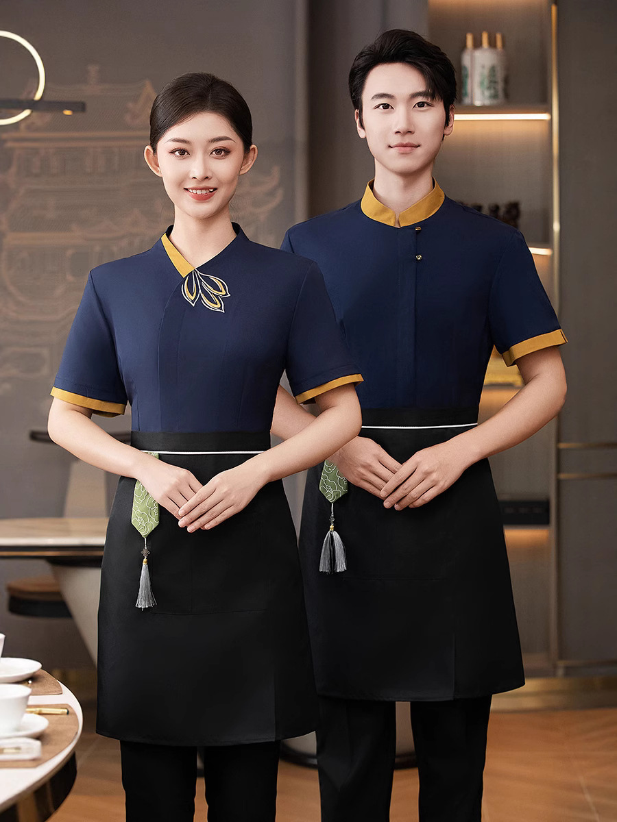 Pakaian Kerja Pelayan Hotel Lengan Pendek Wanita Katering Gaya Cina Restoran Restoran Hot Pot Rumah Teh Set Musim Panas Staf Pria