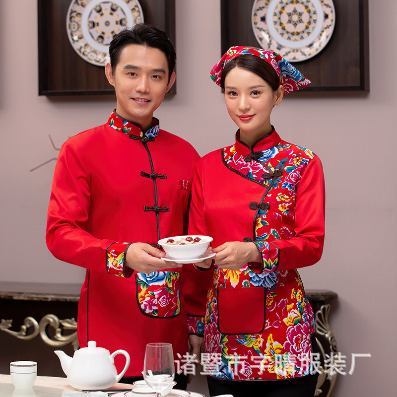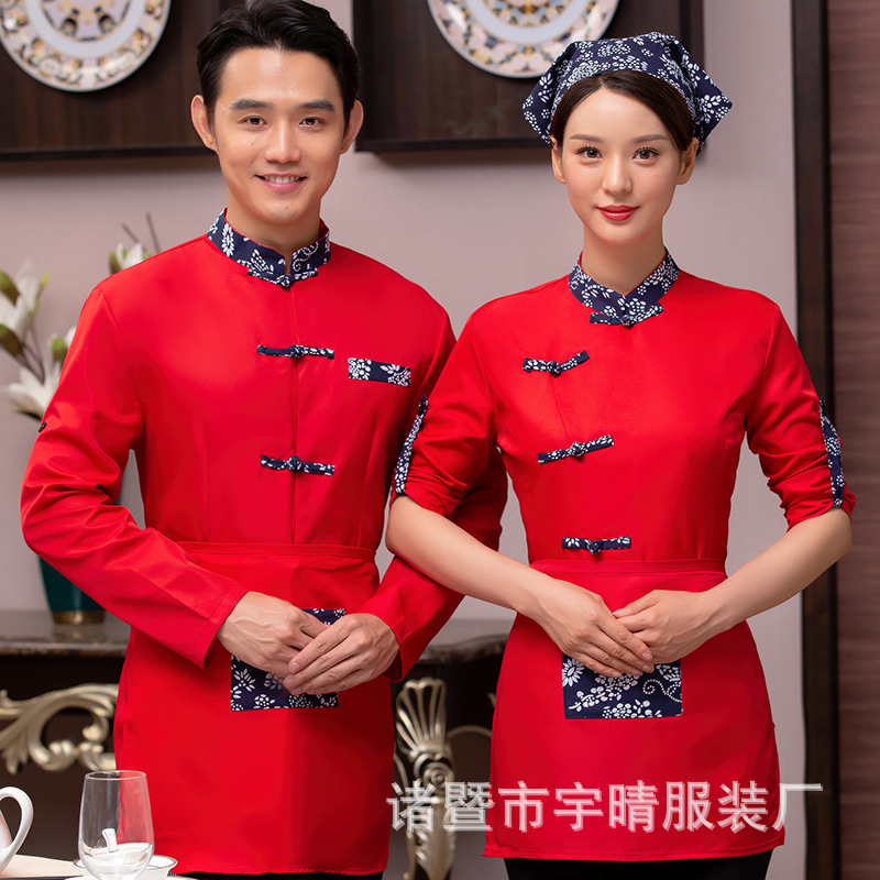Pakaian kerja pelayan Hotel, lengan panjang musim gugur dan musim dingin pakaian restoran rumah pertanian restoran Cina