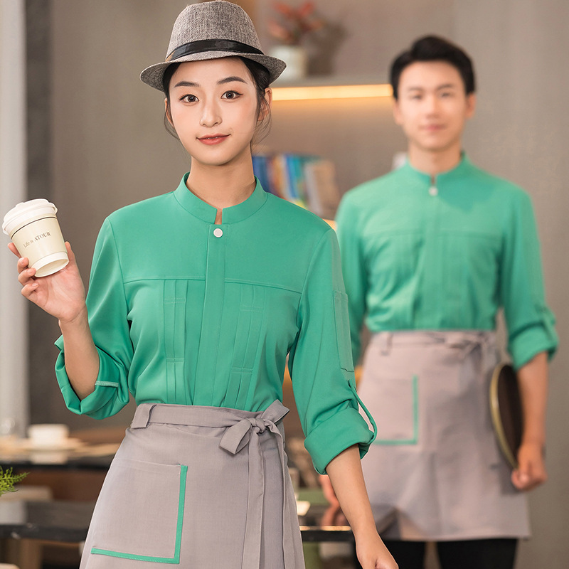 Pakaian kerja pelayan katering lengan panjang, pakaian musim semi, musim gugur dan musim dingin, toko susu, restoran, teh, makanan penutup