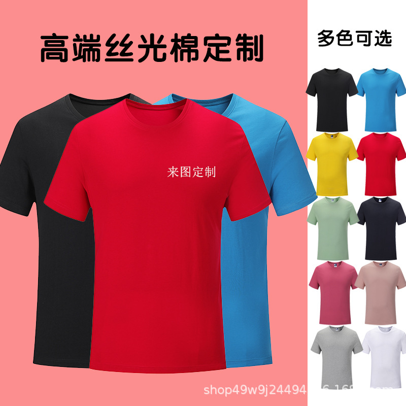 Kaus katun Mercerized kaus iklan aktivitas kustom kaus kerja perusahaan leher bulat lengan pendek logo cetak bordir grosir polos