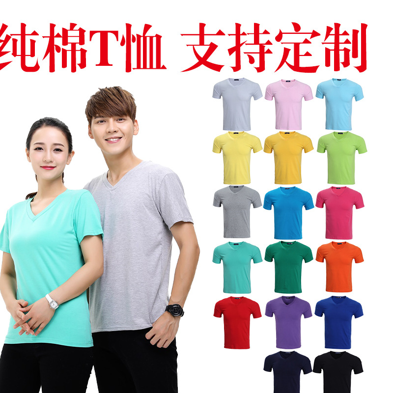 Kaus katun murni V-neck cetak custom peta kelas seragam tim pakaian kerja kerah ayam gaya Korea kampus logo kustom musim panas