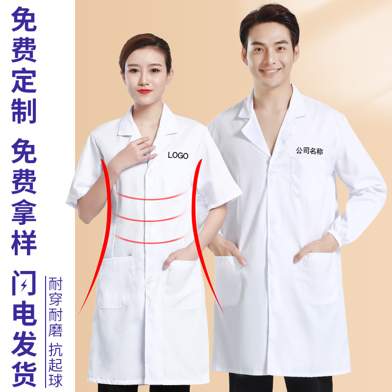 Baju kerja putih gaun disesuaikan LOGO cetak pakaian dokter perawat apotek pakaian ramping salon kecantikan makanan pabrik pakaian eksperimental