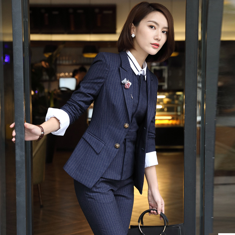 Pakaian bisnis wanita, setelan tiga potong pakaian bisnis baru musim gugur dan musim dingin, temperamen gaya Korea, pakaian formal wanita ukuran besar