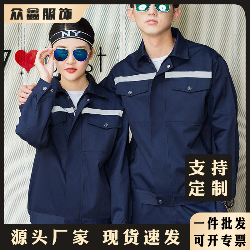 Setelan baju kerja lengan panjang, pakaian pelindung kerja strip reflektif, lengan panjang, musim semi dan musim gugur, bengkel, anti aus, perbaikan mobil, pabrik, bordir kustom/Buatan