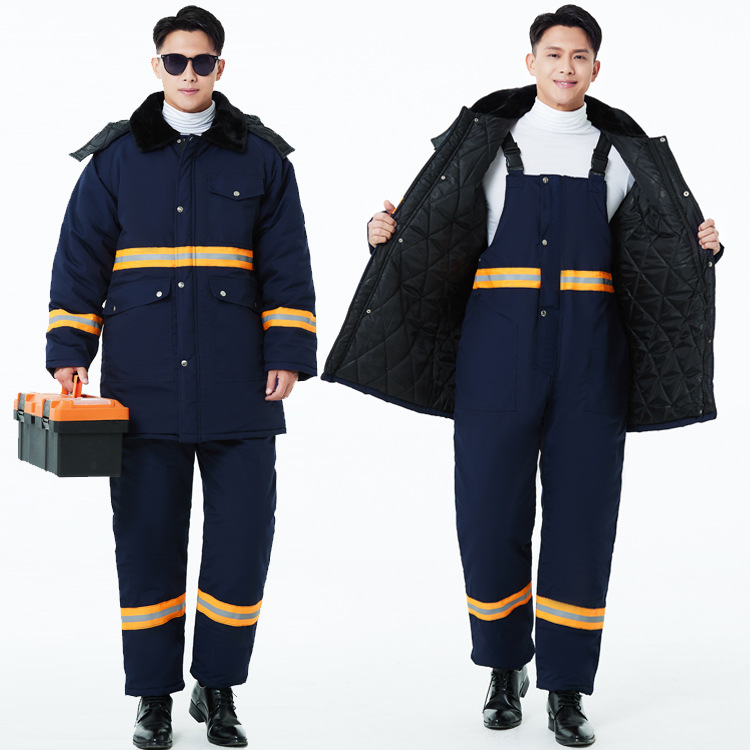 Mantel keamanan musim dingin properti keamanan pakaian katun empuk pakaian kereta bawah tanah hitam set penuh bantalan katun mantel tahan dingin pakaian keamanan kerja