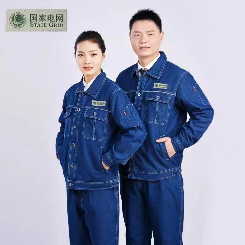 Power grid Denim tipis baju kerja setelan grosir empat musim lengan panjang power teknik listrik Biro perlindungan tenaga kerja pakaian