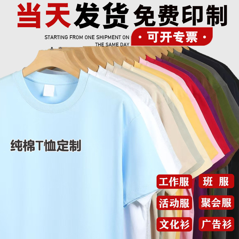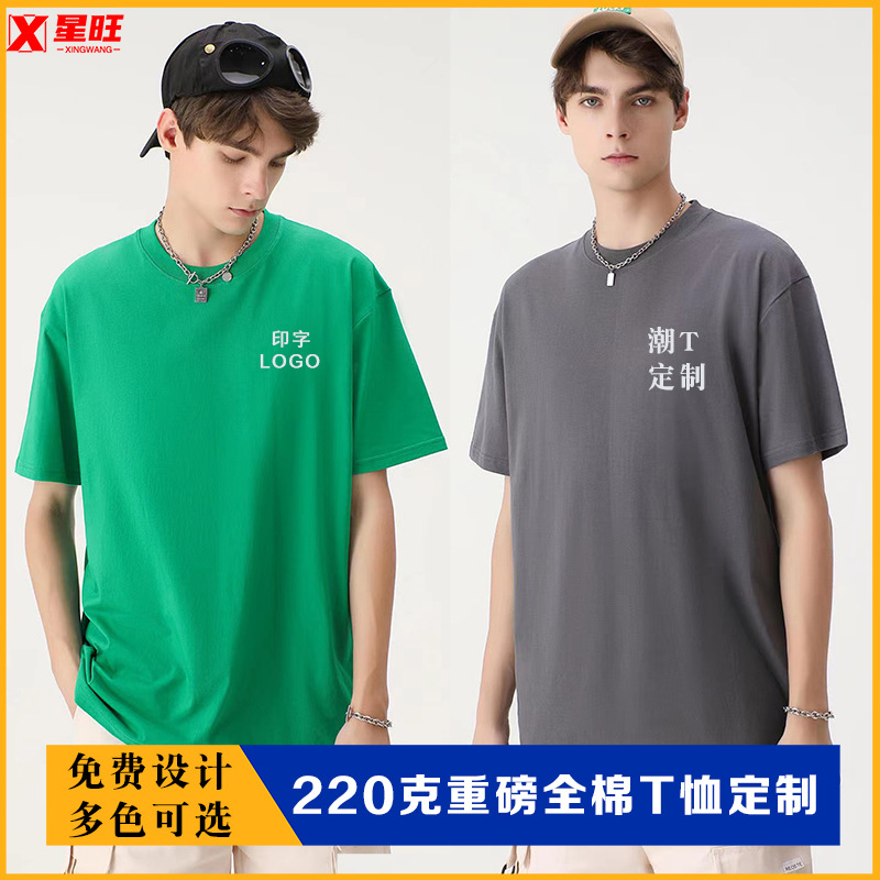 Kaus kerah bulat katun 220g berat baju kerja bercetak logo sesuai pesanan baju kelas baju musim panas disesuaikan
