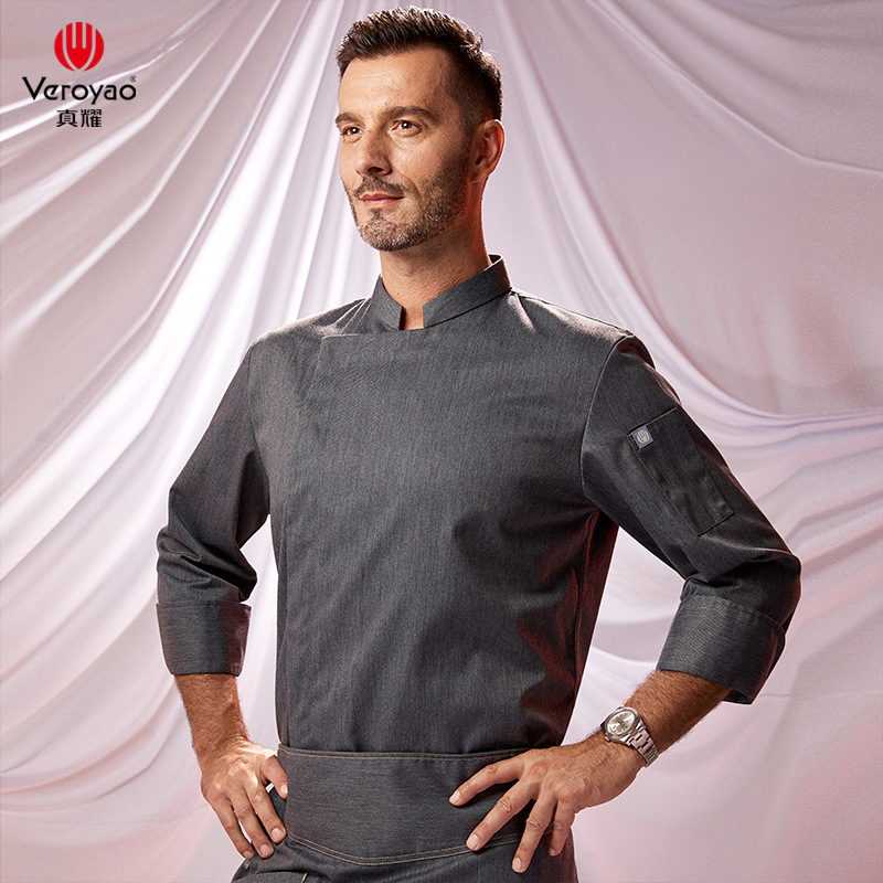 Zhenyao pakaian koki dapur pria, lengan panjang musim gugur dan musim dingin hotel restoran koki pakaian kerja pria Restoran lengan pendek
