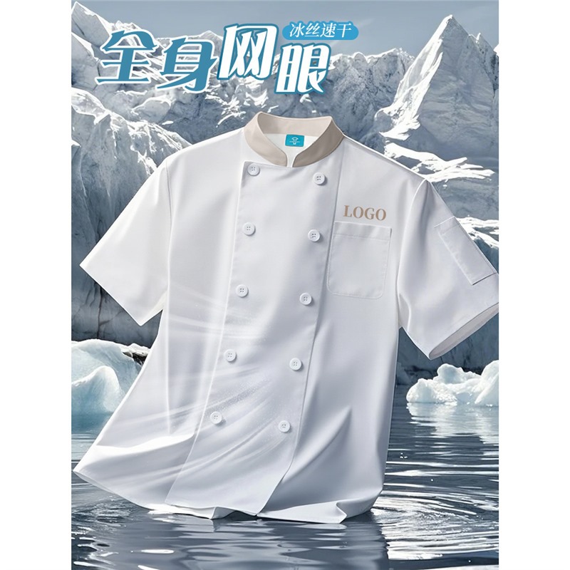 Pakaian Kerja Koki Jaring Jaring Bernapas Super Tipis Sutra Es Pakaian Koki Bernapas Baking Dapur Setelah Makan Hotel Musim Panas Lengan Pendek