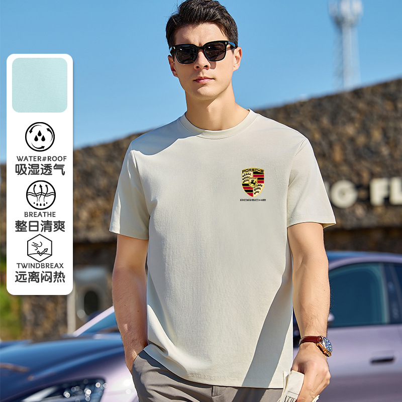 T-shirt Katun Murni Kelas Atas Pakaian Kerja Pakaian Kerja Kerah Bulat Lengan Pendek Pakaian Kelas Kustom Bercorak Bordir Logo