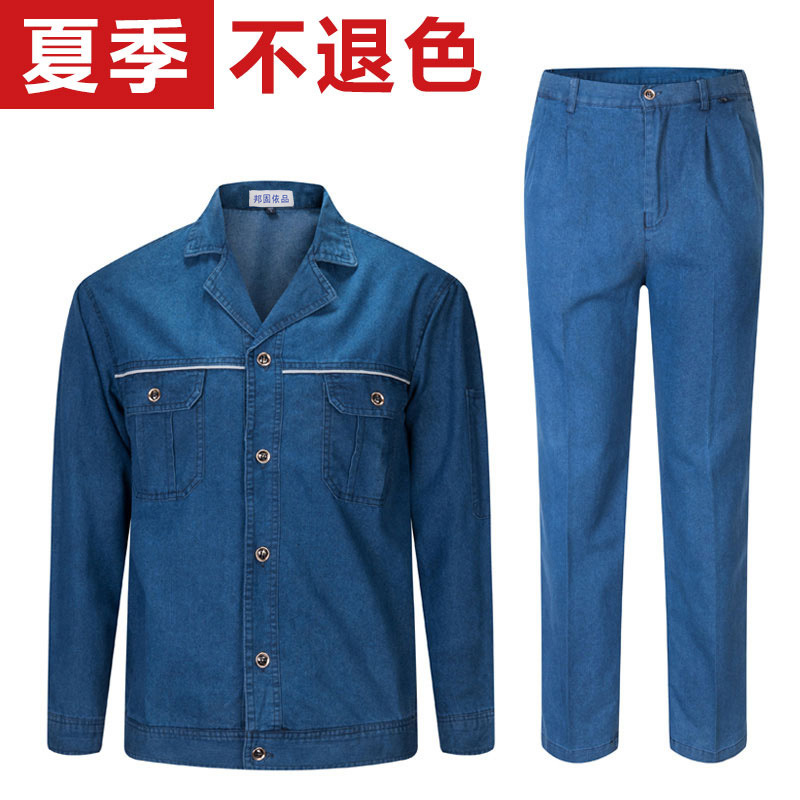 Pakaian kerja Denim lengan pendek musim panas setelan pria tipis ahli listrik negara kisi pabrik pakaian pelindung kerja lengan panjang pakaian pabrik