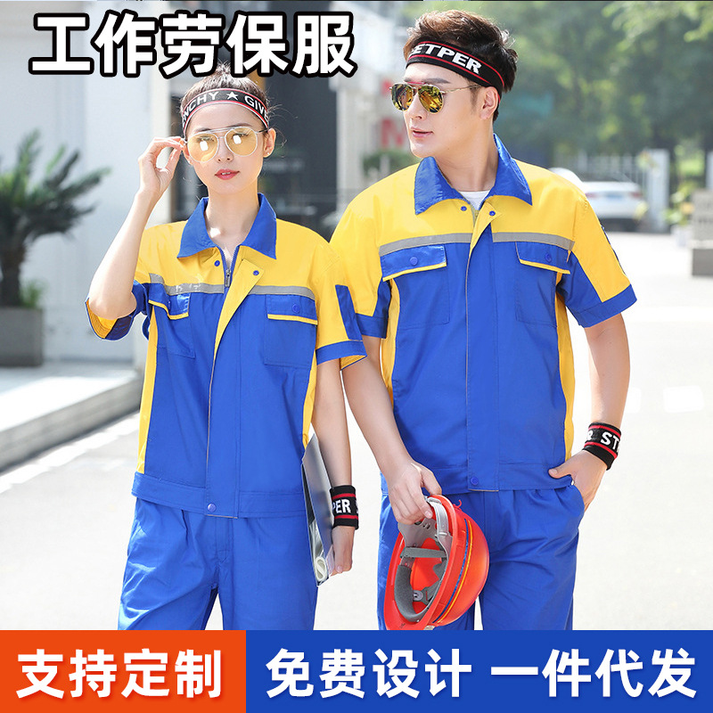 Setelan baju pelindung kerja, lengan pendek musim panas baju kerja bengkel pabrik baju kerja logo perbaikan perkakas listrik pakaian kerja LOGO