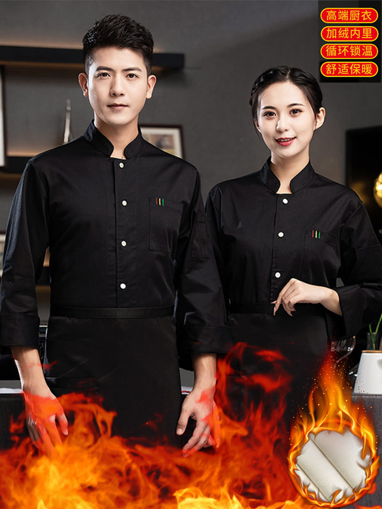 Baju koki lengan panjang pria dan wanita, pakaian kerja koki berlapis bulu tebal hangat, lengan panjang musim gugur dan musim dingin untuk restoran hotel katering pakaian dapur koki memanggang
