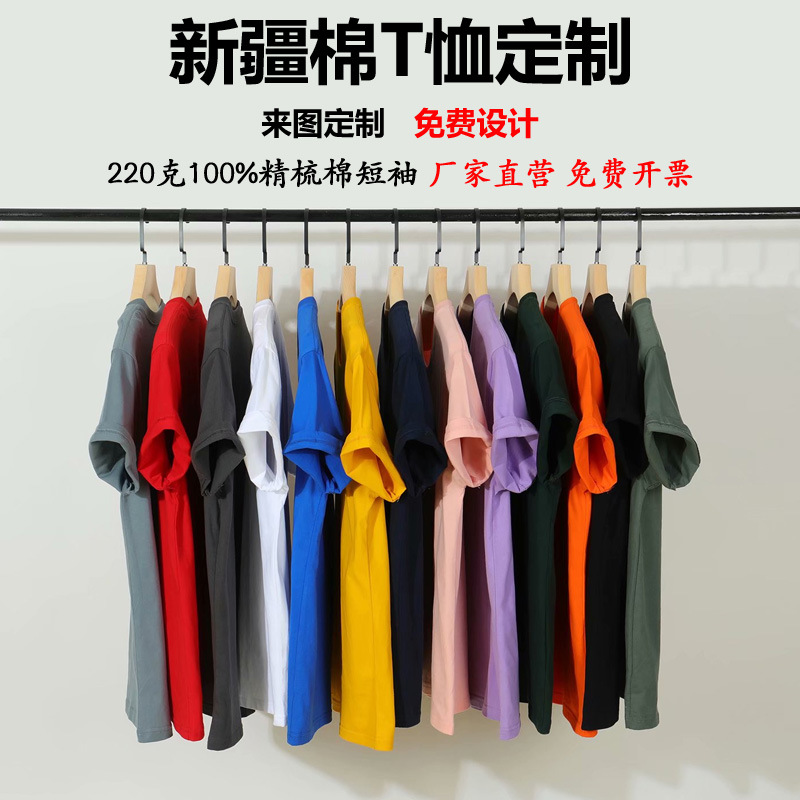 Kaus katun logo kustom kaus budaya iklan lengan pendek leher bulat baju Grup pakaian kerja perusahaan katun Xinjiang