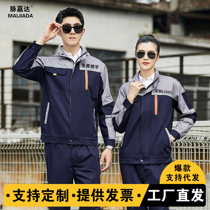 Pakaian kerja setelan pria lengan panjang pakaian pelindung tenaga kerja grosir musim semi dan musim gugur pakaian kerja disesuaikan baju bengkel pabrik logo bordir
