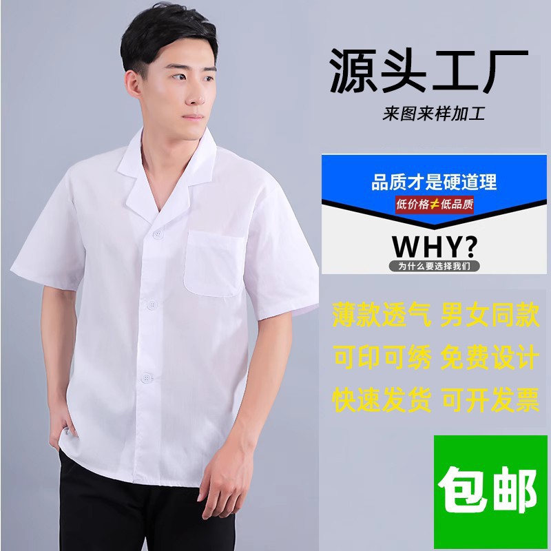 Pakaian kerja pabrik makanan putih mantel percobaan pria dan wanita pakaian kerja lengan pendek pakaian kerja Sangat bagus bersirkulasi kerah tipis pakaian musim panas