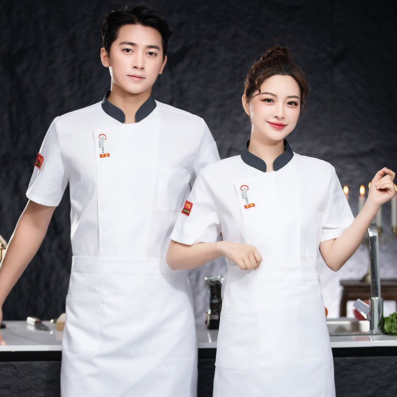 Baju kerja koki bernafas, lengan pendek musim panas, pakaian staf katering dapur hotel musim panas