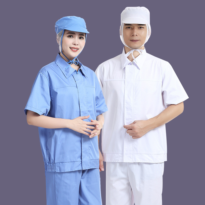 Baju pabrik makanan overall pria dan wanita pakaian sanitasi putih bengkel pabrik jas lapel tipis biru bernapas
