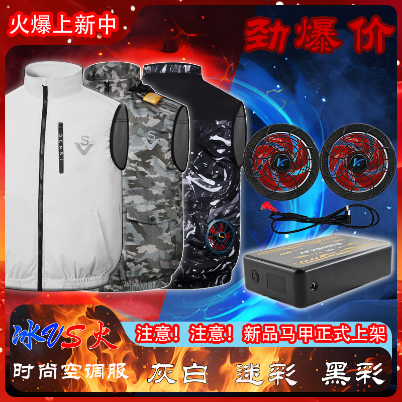 Kipas pendingin pakaian musim panas, baju pengisian daya suhu tinggi, baju AC, pelindung tenaga kerja, baju las bengkel, pakaian luar ruangan
