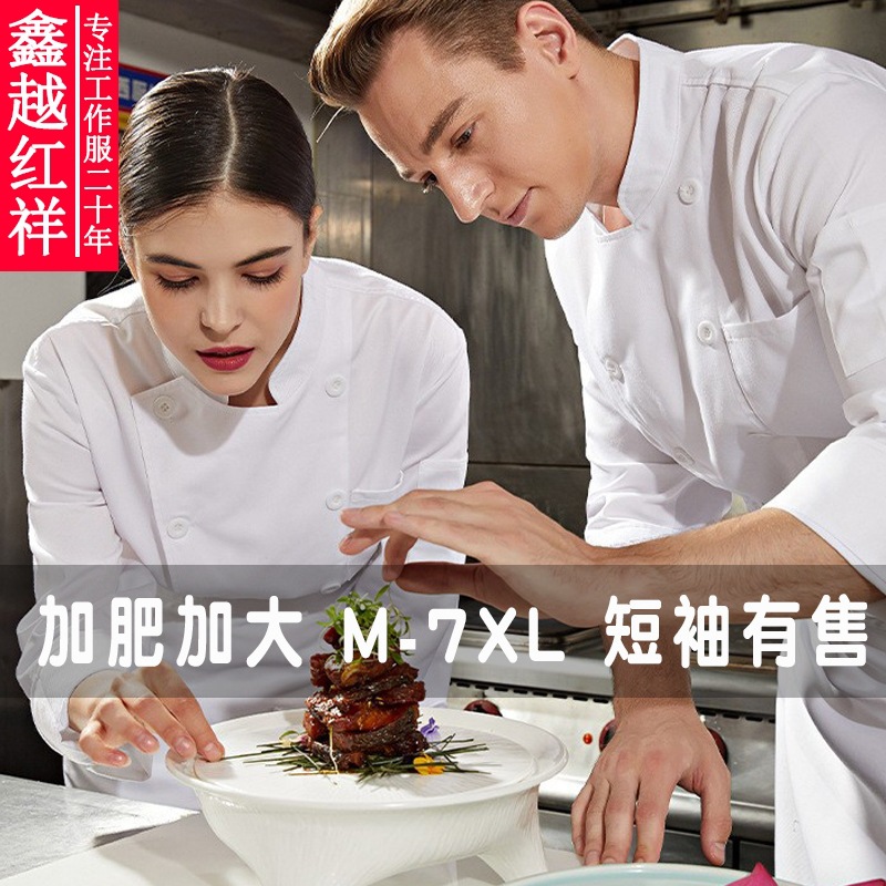 Pakaian koki lengan panjang musim panas, baju koki hotel dan restoran, lengan panjang, pakaian dapur ukuran ekstra besar, pakaian musim panas