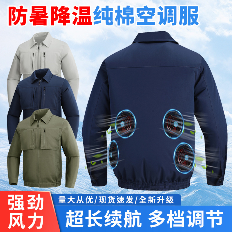 Pakaian AC Kerja Las Katun Musim Panas Tahan Panas Empat Kipas Pendinginan Kapas Kepadatan Tinggi Pakaian Situs Pendinginan Cerdas