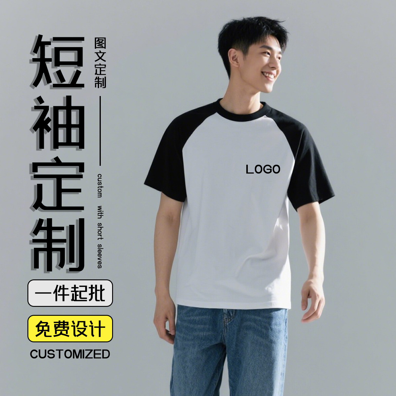 T-shirt Lengan Pendek Katun Tulen Lengan Sambungan Warna Kontras Kaos Budaya Iklan Pakaian Kerja Kerah Bulat Pakaian Kelas Kustom DIY
