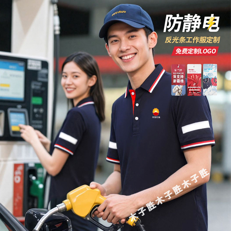 Kaus Lengan Pendek Anti Statis Musim Panas Kaus POLO Pakaian Kerja Kustom untuk SPBU Sinopec