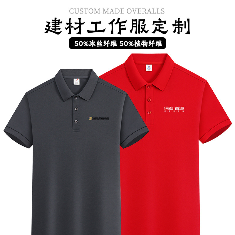 Baju kerja lengan pendek, es sutra dingin merasa mesin cuci tidak deformasi lengan pendek kerah pakaian kelas iklan baju kerja kemeja Polo pakaian kerja logo kustom