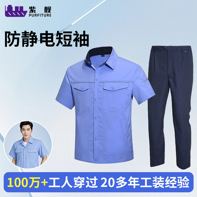 Pakaian Kerja Musim Panas Kelas Atas Setelan Lengan Pendek Pria Pakaian Teknik Anti-Statis Multifungsi Serat Bambu Kering Cepat Bernapas Model Tipis