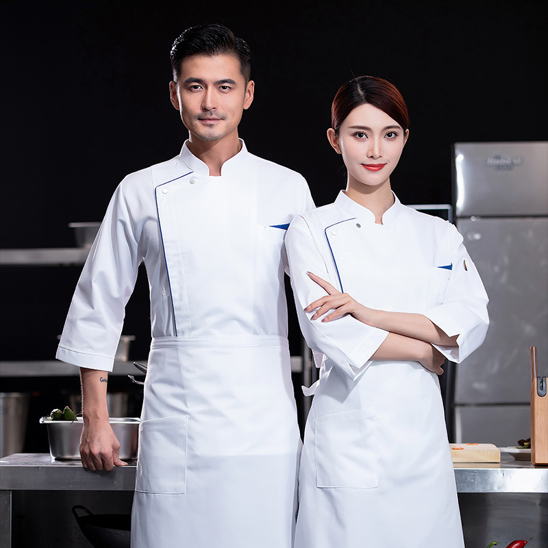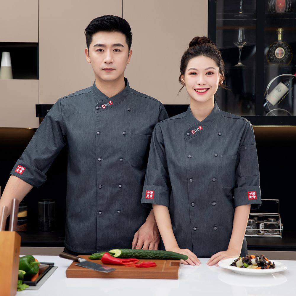 Baju koki gaya China, pakaian Koki kelas atas, hotel restoran makan pria dan wanita lengan tiga perempat