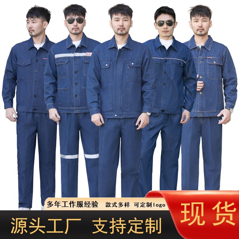Setelan pakaian kerja Denim tebal Musim Semi dan Musim Gugur pabrik bengkel tukang las pakaian pelindung tenaga kerja tahan aus anti-melepuh pakaian kerja dapat dibordir
