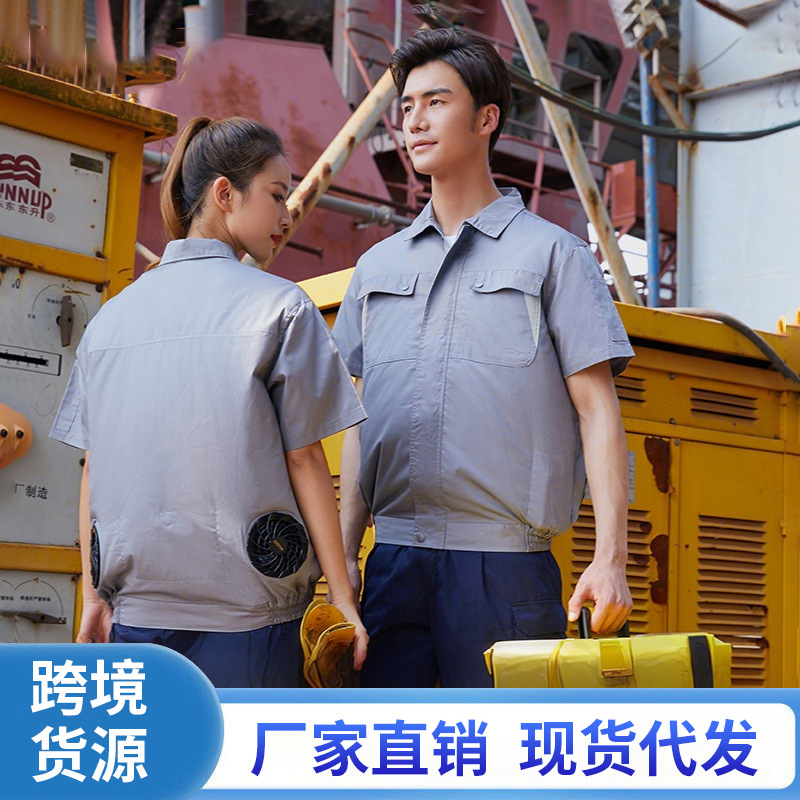 Pakaian lengan pendek pria, musim panas pakaian dengan kipas pendingin pakaian kerja pria pakaian pendingin situs konstruksi perlindungan tenaga kerja pakaian pengisian daya pendinginan
