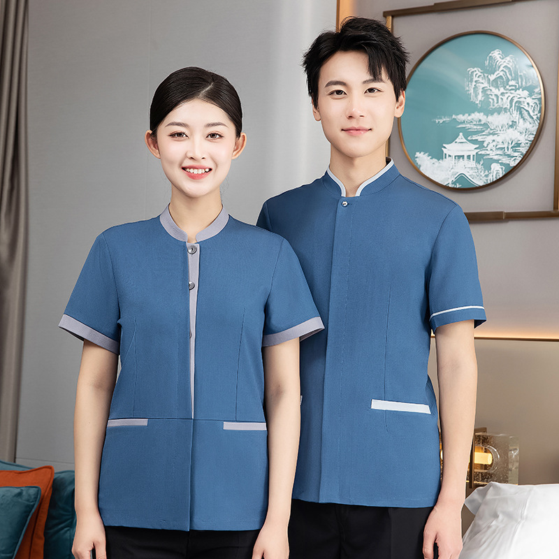 Pakaian kerja pembersih kelas atas wanita, pakaian lengan pendek musim panas ruang tamu hotel rumah sakit Properti pembersih bibi pakaian pria