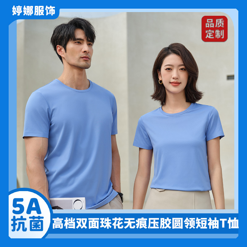 Jinamonia kaus kerah bulat warna polos mulus 100D5A baju kerja antibakteri kaus iklan kustom cetak logo kaus lengan pendek untuk pria