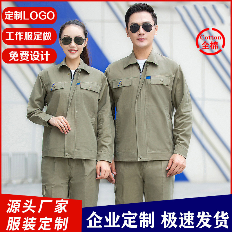Pakaian kerja katun murni untuk pria, setelan musim semi dan musim gugur, setelan las tahan noda dan tahan aus, pakaian kerja bengkel perbaikan mesin yang nyaman dan bernapas, pakaian pelindung kerja