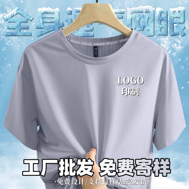 T-shirt Sutra Es Pakaian Kerja Kustom LOGO Pakaian Tipis Lengan Pendek Musim Panas Baju Olahraga Cepat Kering Pakaian Kerja Pria