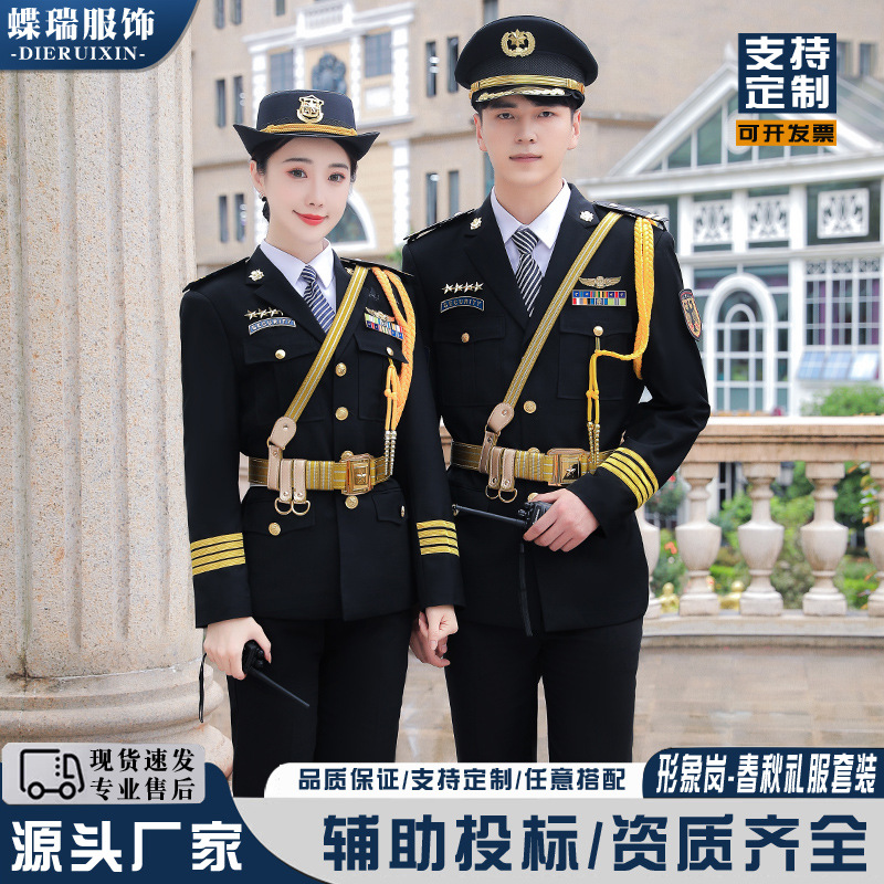 Pakaian keamanan baru Musim Semi dan Musim Gugur setelan seragam keamanan tiang Gambar penjaga properti komunitas pakaian kerja keamanan pakaian musim dingin